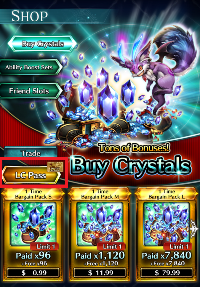 - Tap [Shop] on the Home screen, then tap [LC Pass] on the Shop screen.