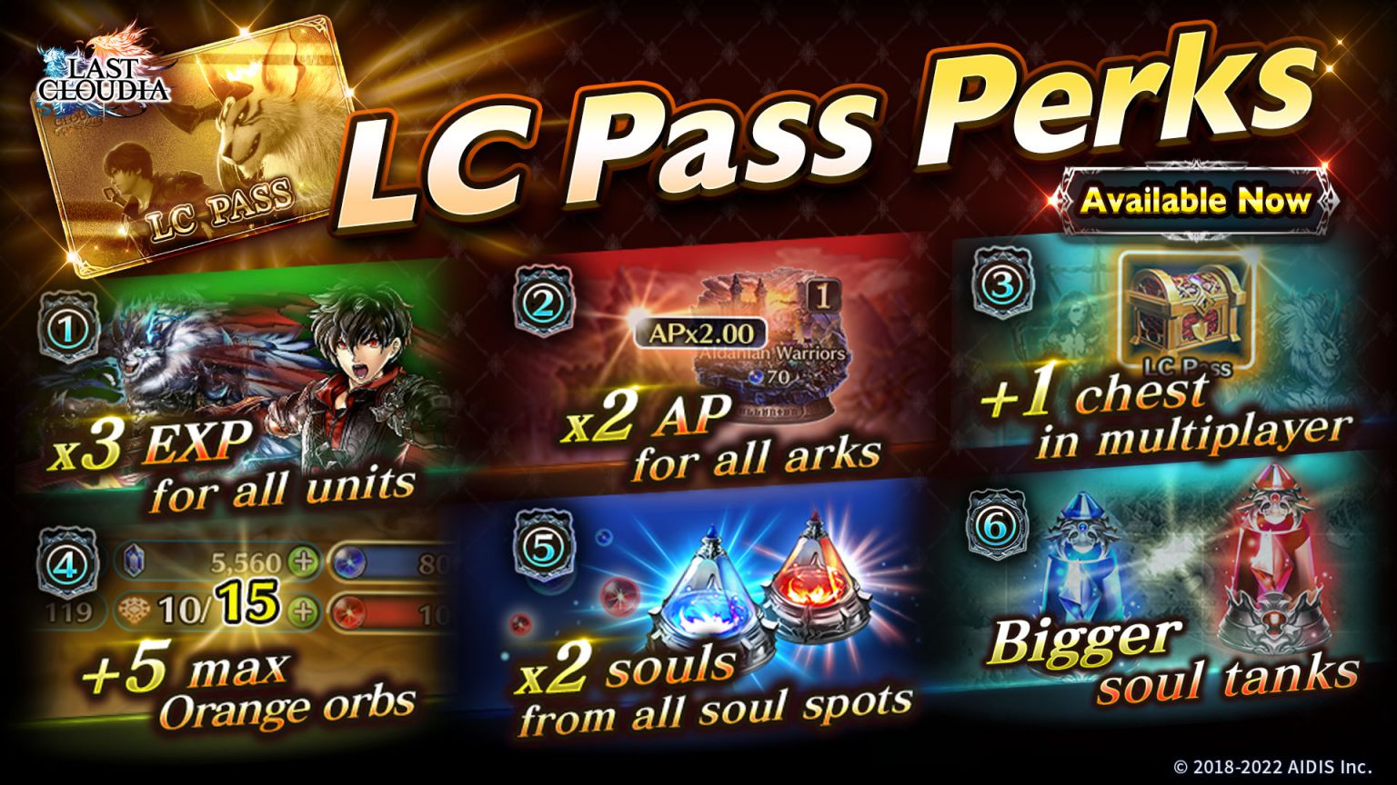 *LC pass perks that overlap with the Beginner Booster perks (x3 EXP, x2 AP, x2 souls from soul spots) do not stack when both are active.