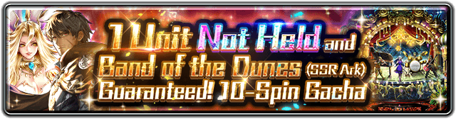 - 1 Unit Not Held and Band of the Dunes (SSR Ark) Guaranteed! 10-Spin Gacha