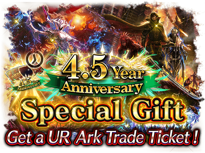 Claim this gift to receive a ★4.5YearAnniv UR Ark Trade Ticket, which can be used to trade for a UR ark of your choice in the lineup.